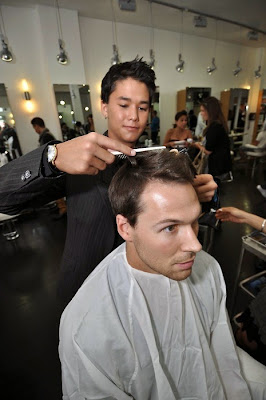 Boo Boo le corta el pelo a Daniel durante el Hard Candy Pre-Estreno de belleza-Prep en el salón de Gavert Atelier ubicado en Beverly Hills ... pobre Daniel se ve tan nervioso!